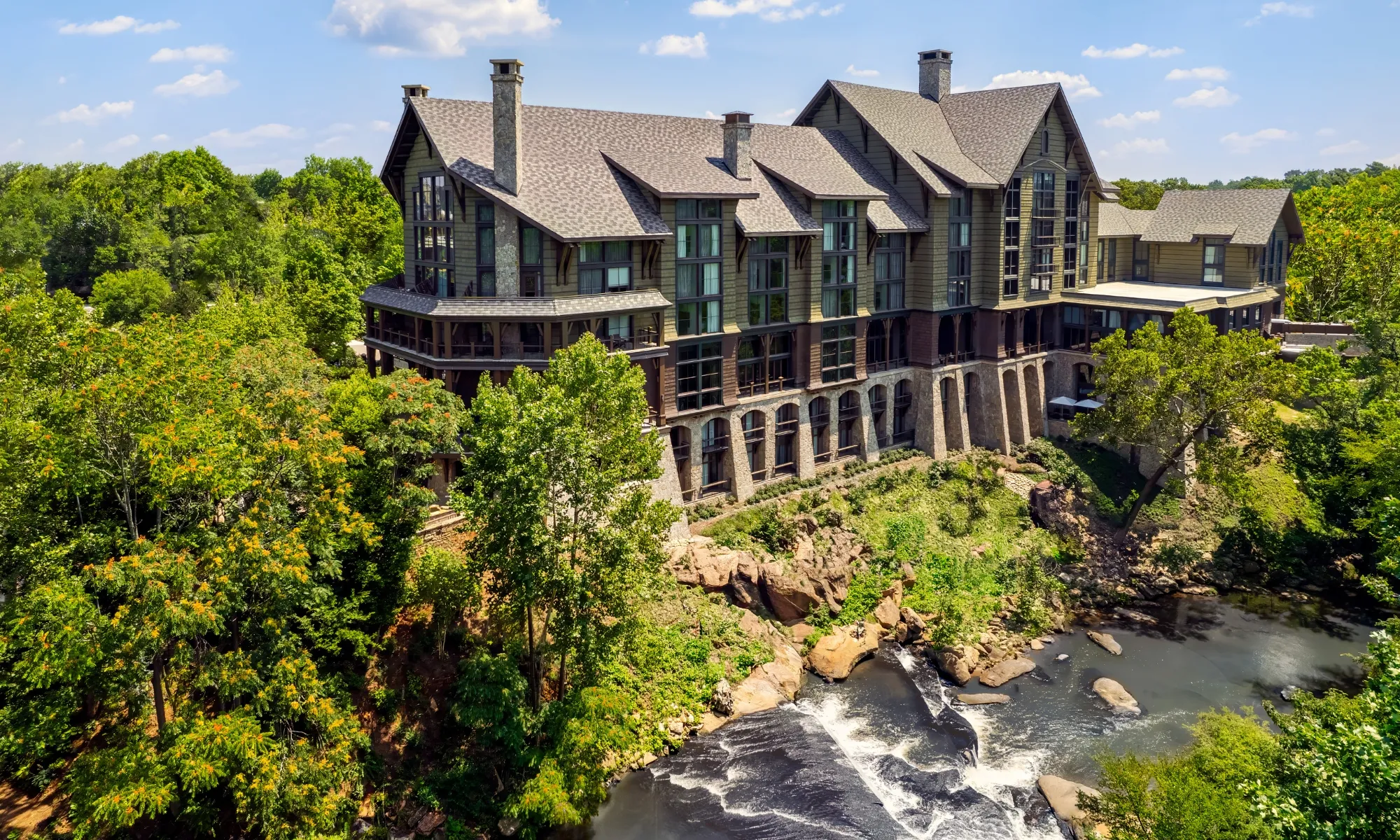 Overlooking the Reedy River in Greenville, South Carolina, the Grand Bohemian Lodge is a boutique property that combines rugged elegance with artistic flair. Part of Marriott’s Autograph Collection, this hotel is filled with curated Native American art, dramatic stone fireplaces, and refined details that create a distinctly bohemian spirit.
