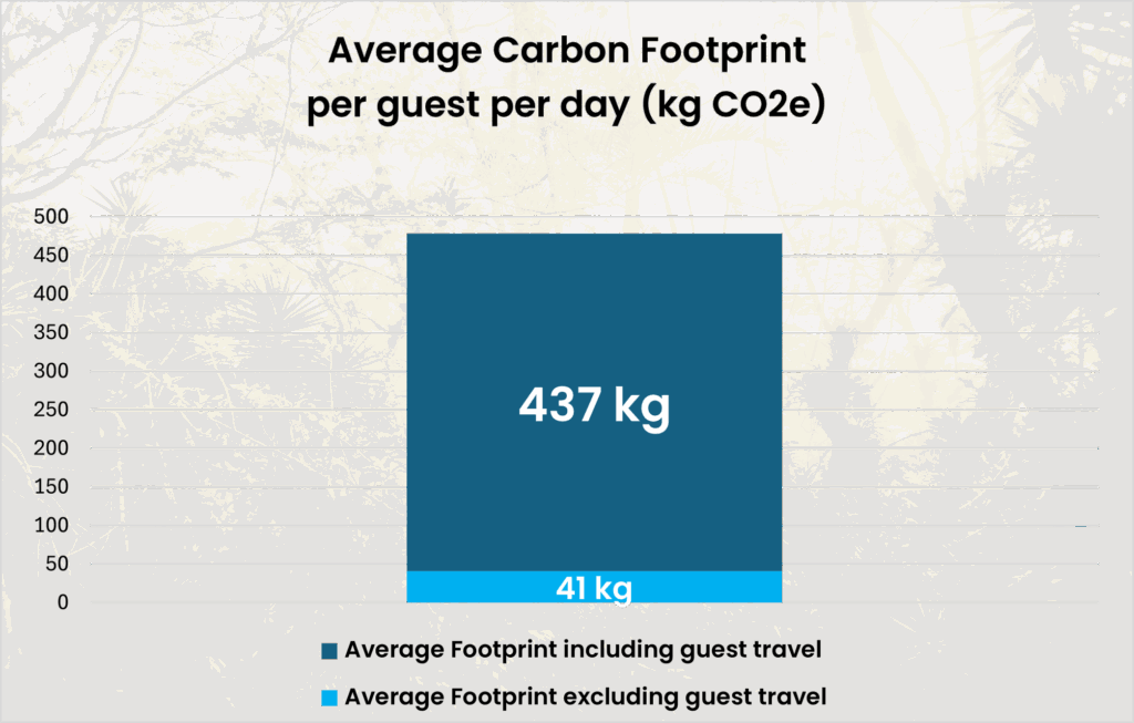 Average 2024 carbon footprint per guest per day excluding guest travel (kg CO2e): 41 kg. Average 2024 carbon footprint per guest per day including guest travel (kg CO2e): 437 kg