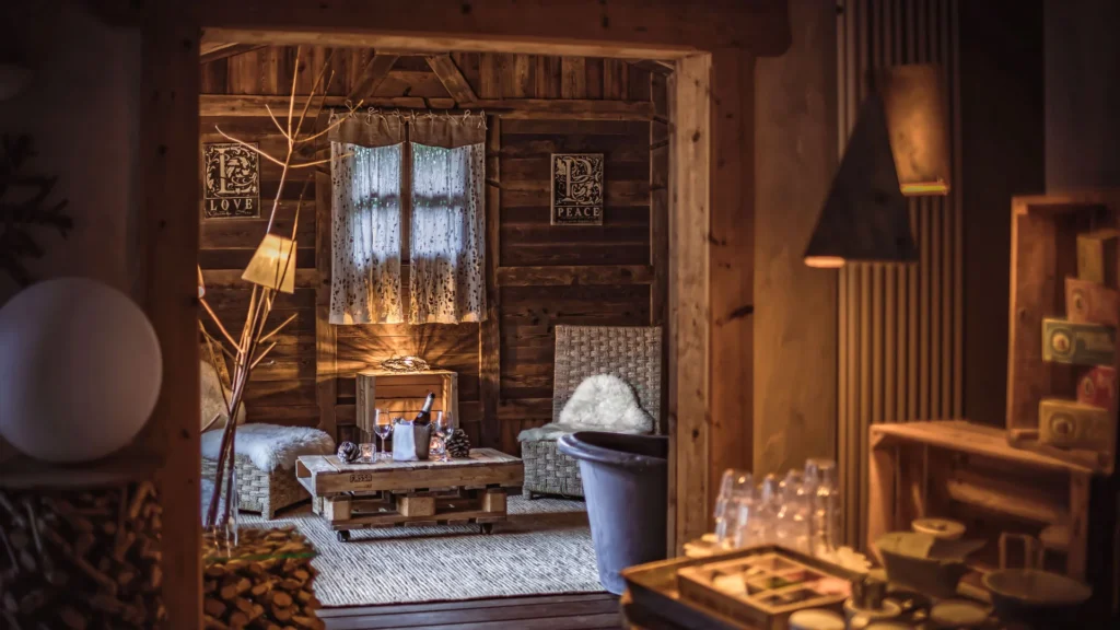 At Chalet Hotel Le Prieuré, rooms feature balconies with views of Mont Blanc or the Aiguilles and a modern chalet style with contemporary interiors. The spa and fitness area includes a hammam, jacuzzi, outdoor sauna, pool, and herbal tea room, while Le Rotissier serves traditional Savoy dishes against a mountain backdrop. A piano lounge and fireside bar provide the perfect setting to unwind in the heart of Chamonix.