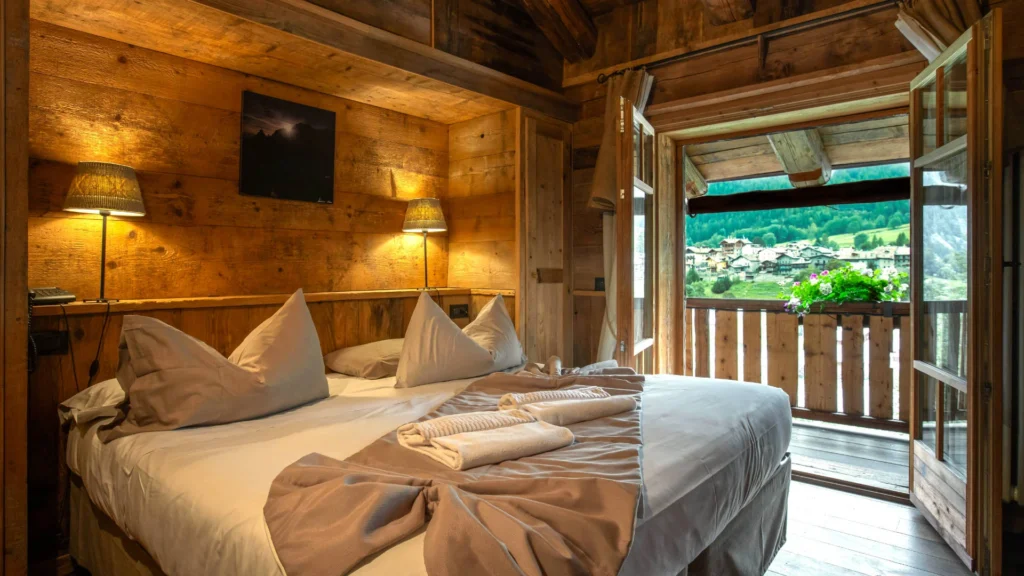 Positioned steps from Courmayeur’s vibrant center, Chalet Svizzero is a privately owned retreat that’s been lovingly maintained by the same family for generations. It blends rustic alpine charm with relaxed comfort. Thanks to the crisp mountain breeze and shaded balconies, the chalet stays naturally cool and relaxing. Be sure to unwind in the soothing spa or savor the flavors of the region at the inviting in-house restaurant.