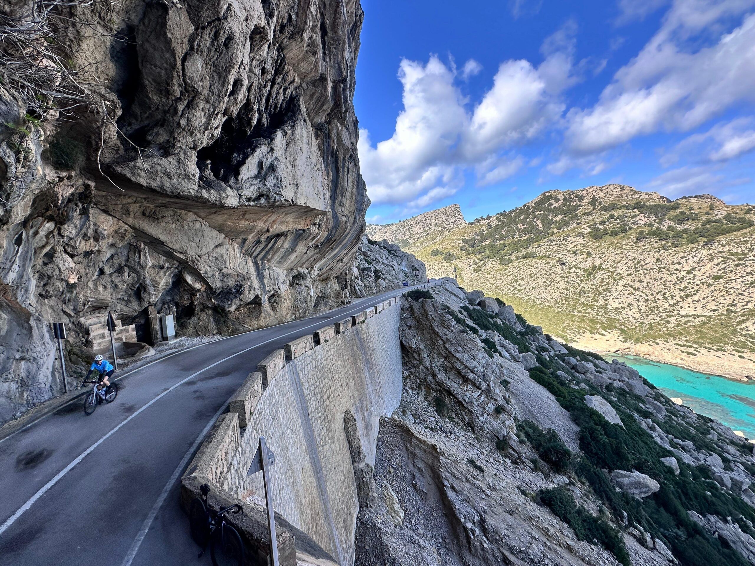 A ride to the tip of the Formentor Peninsula defines a Mallorca cycling trip—pine forest opening onto switchbacks above the sea and limestone cliffs dropping to deep blue water.