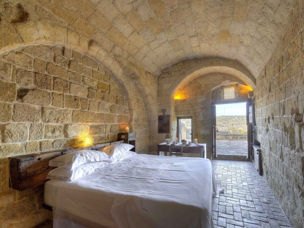 Sextantio Le Grotte della Civita offers a unique stay in the ancient cave dwellings of Matera’s UNESCO-listed Sassi district. Carefully restored with traditional materials and minimal intervention, each room preserves its raw beauty while offering refined comfort. The result is a deeply atmospheric retreat where history and authenticity take center stage.
