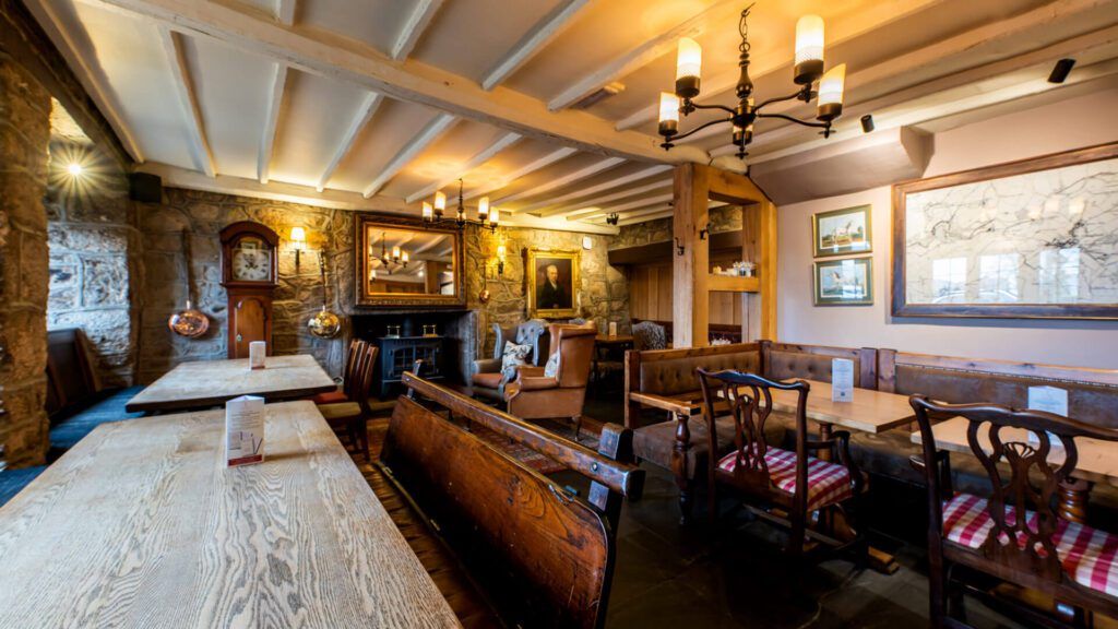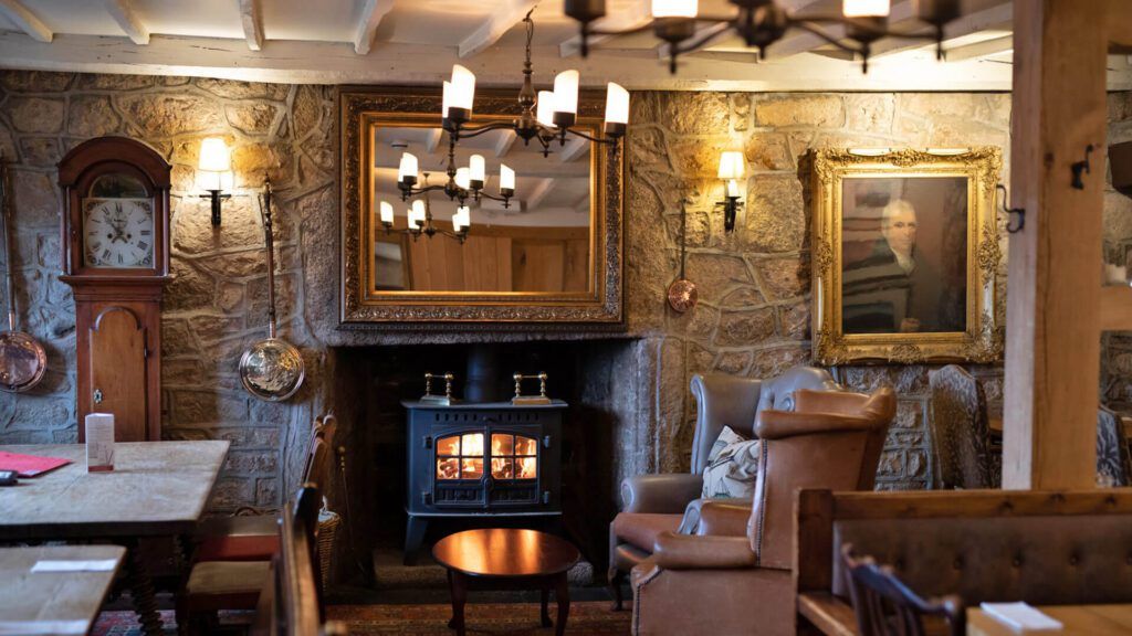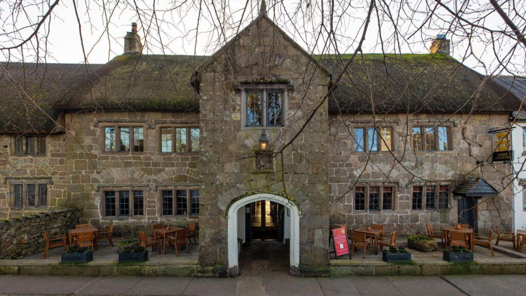 A 13th-century coaching inn at the heart of Chagford, the Three Crowns sits at the edge of Dartmoor National Park behind an imposing granite facade. Inside, inglenook fireplaces, oak beams, and a glazed courtyard atrium create a characterful setting that balances centuries of history with genuine comfort. The 21 en-suite rooms are individually styled, and the kitchen draws entirely on local and seasonal Dartmoor produce.